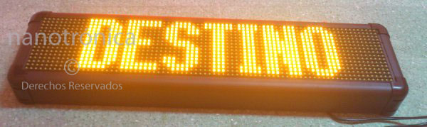 | Indicador DESTINO | 60m | Pantalla de aplicación especial para el transporte público con resolución de 96 x 16 px, para el despliegue de información al publico desde una unidad de transporte Dimensiones de 110 x 25cm | ![]() |