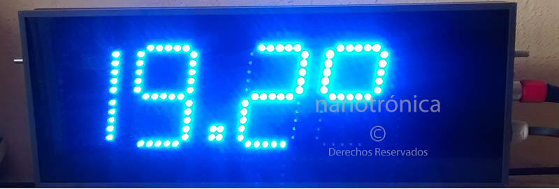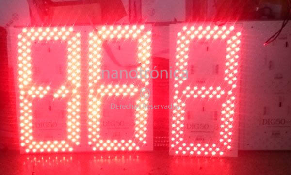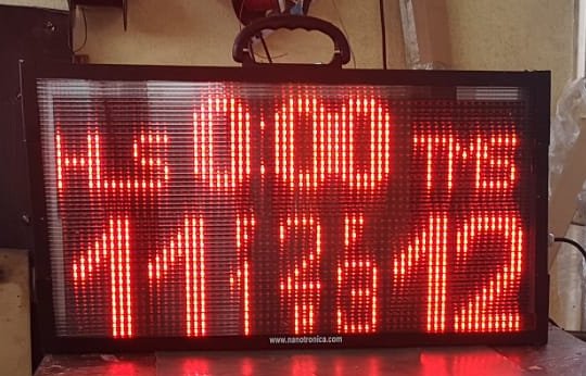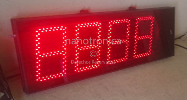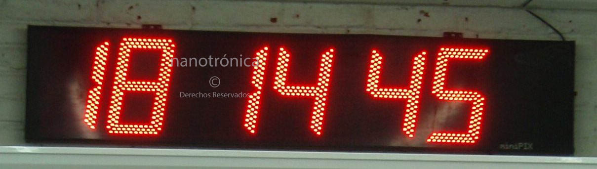 | MP241 | 60m | 4 díg. de 20 cm. gabinete de aluminio tapa frontal de acrílico del color de los leds, configurable para programarse mediante un botón, red ethernet alámbrica o WiFi, desde PC o dispositivo android versión 4.4 o superior, con Dimensiones de 72 x 25cm | ![]() |