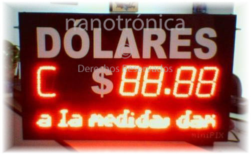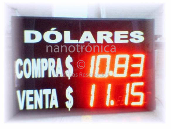 Los relojes, termometros y Tableros de Divisas de este tipo estan diseñados para soportar las inclemencias del tiempo, es decir son de categoria intemperie. Para su mejor aprovechamiento hemos realizado varios modelos, así usted podrá seleccionar el que mejor cumpla con sus expectativas. Los diseños estan basados principalmente en los tamaños de dígitos que comercializamos: