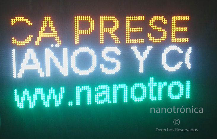 | Mensajes FIJOS | 30m | Basados en leds de 5mm, hacemos cualquier mensaje con tipos de letra de acuerdo a su diseño, incluímos diseños gráficos, contamos con la experiencia necesaria | |