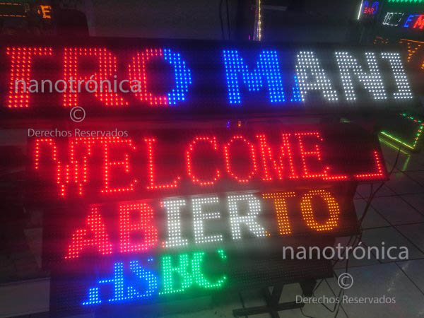 | Mensajes FIJOS | 30m | Basados en leds de 5mm, hacemos cualquier mensaje con tipos de letra de acuerdo a su diseño, contamos con la experiencia necesaria | ![]() |