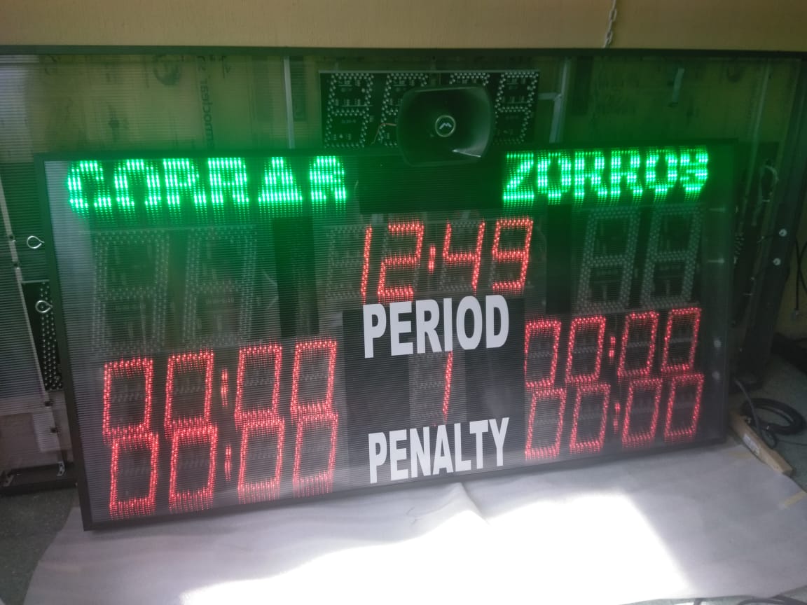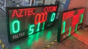 | Marcador para Hockey | 120m | 4 díg 30cm, dimensiones de 180 x 90cm, Control mediante aplicación para Windows o Android. Ventilador para mantener una temperatura de trabajo interna homogenea, Nombres de equipo programables, totalmente inalámbrico. | ![]() |