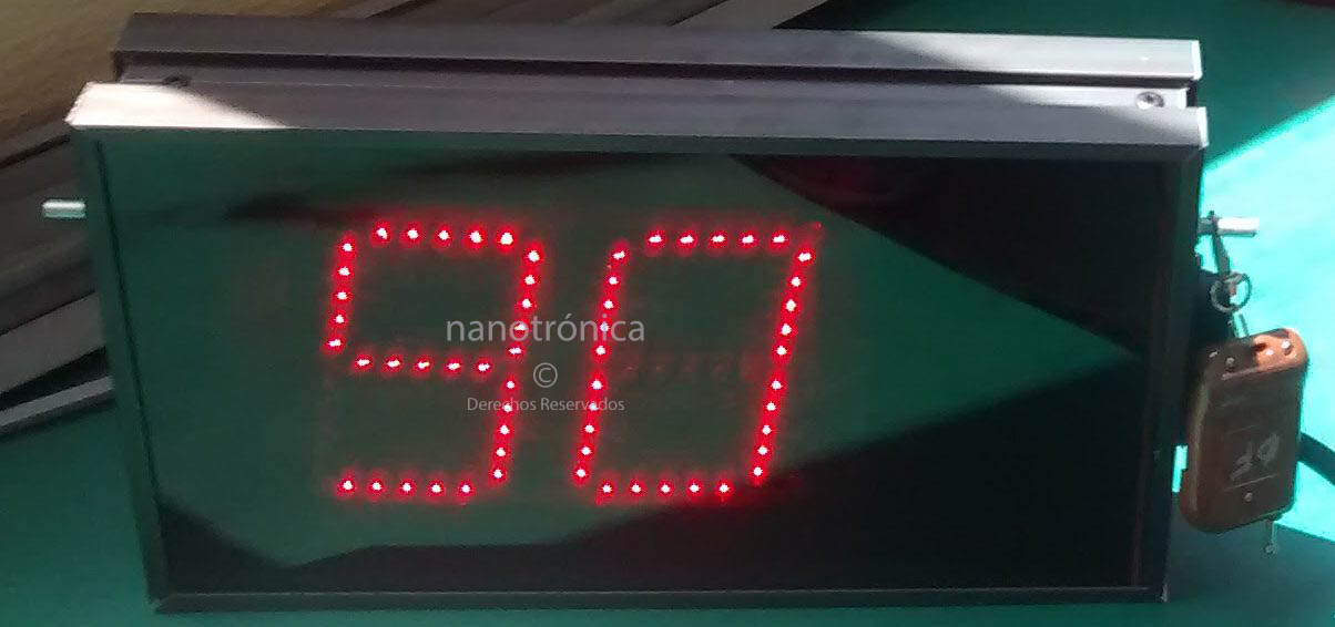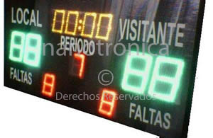| TD16-9M | 120m | 4 dígitos de 32 cm para despliegue de marcadores, 7 dígitos de 16 cm para despliegue de faltas, período y cronometro, despliegue abreviado en 5 letras o caracteres para nombres de equipo dimensiones de 100 x 55 cm,2 modos de funcionamiento Marcador deportivo -> Reloj, manejo por Dispositivo Android 4.4 o superior mediante App especial. | ![]() |