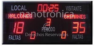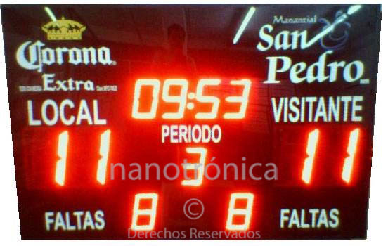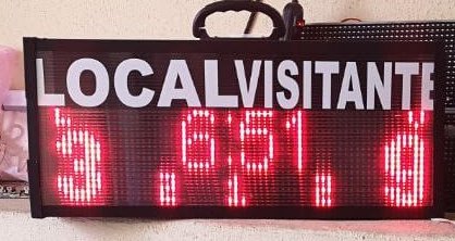 | TD16-2M | 30m | 6 díg. 12cm, para Marcador y Cronómetro, 3 digitos de 5 cm para período y faltas, asi como indicadores de Local y Visitante dimensiones de 70 x 30cm, Tres modos de funcionamiento Marcador deportivo -> Reloj -> pantalla despliega mensajes, maneral superior para su fácil translado, manejo por Dispositivo Android 4.4 o superior mediante App especial. Ideal en escuelas | ![]() |