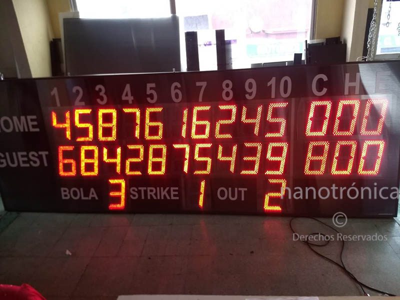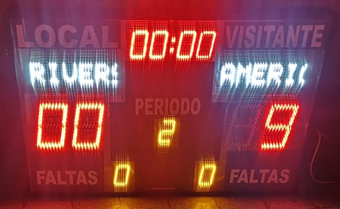 | TD3MRPF Nombres | 120m | 11 dígitos de 32cm, 2 pantallas para nombres de equipo, dimensiones de 180 x 90cm, manejo por Dispositivo Android 4.4 o superior mediante App especial y controla alambrico. Ideal para ligas semi profesionales | ![]() |