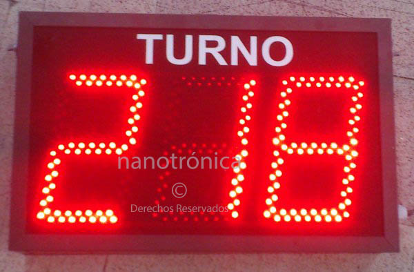 | TT330 | 120m | 3 díg. de 30cm, para indicar el turno a atender, programación por botón tipo push, se puede programar cualquier valor inicial y de alli se inicia la cuenta incremental, este equipo se puede adquirir por pieza o por paquete, en el que se incluye, además de la pantalla; dispensador de boletos, rollo de 10,000 boletos numerado, dimensiones de 50 x 50cm | ![]() |
