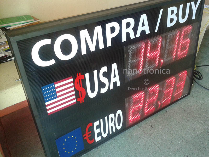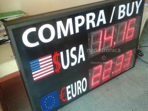| MPD241S | 60m | 5 díg 20cm, Programación a elegir: Botón, Botón Inálambrico, Ethernet y WiFi. En un mismo campo númerico se presentan en forma alternada los precios de compra y venta de la divisa en cuestión. Dimensiones de 95 x 40cm | |