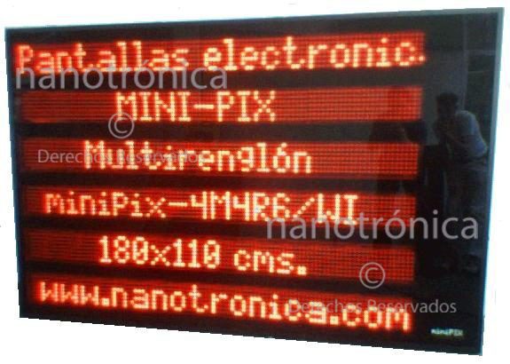 | Pantallas LEDs | 50m | Podemos hacer cualquier tipo de pantalla monocromática, bicolor o de varios colores, para el despliegue de textos dinámicos y estáticos, en tamaños variables y modos de programación: USB, Ethernet alámbrico, RS232, WiFi. Dimensiones Escalables a partir de 20 x 40cm | ![]() |